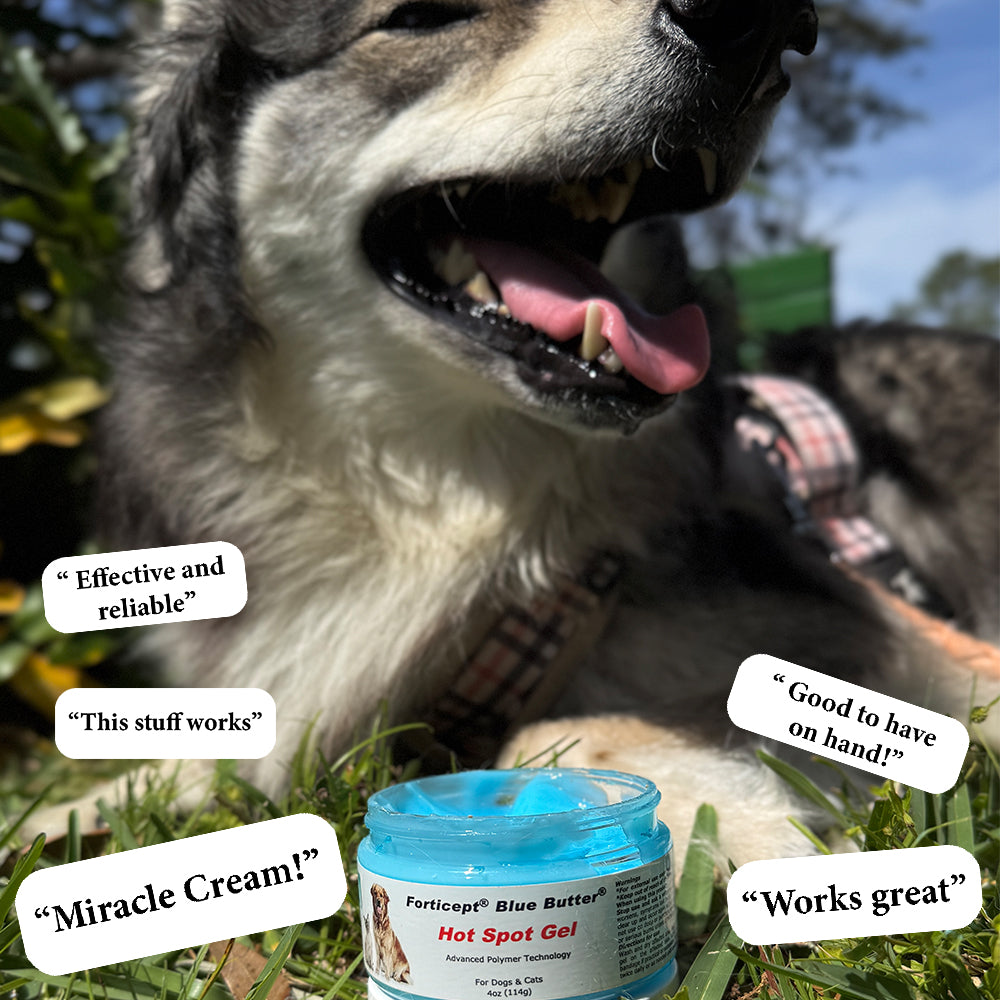 - Medicated Hot Spot Treatment – BlueButter Hot Spot Gel helps relieve Skin Irritation, Itching, Licking, Biting, and Scratching for Dogs and Cats – effective treatment for Pyoderma/Dermatitis (also known as Hot Spot)